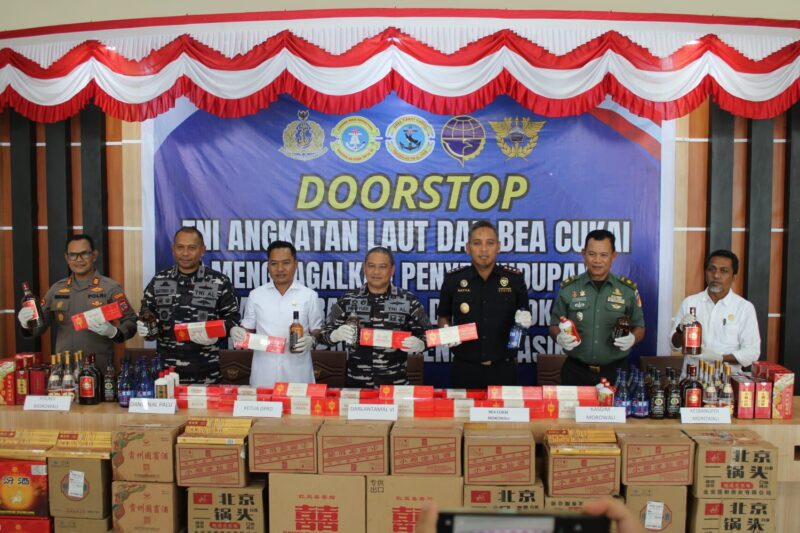 MOROWALI- Pemerintah Kabupaten (Pemkab) Morowali melalui Badan Kesatuan Bangsa dan Politik (Kesbangpol) menghadiri konferensi pers terkait keberhasilan TNI Angkatan Laut (AL) dan Bea Cukai menggagalkan penyelundupan minuman mengandung etil alkohol (MMEA) dan rokok ilegal.