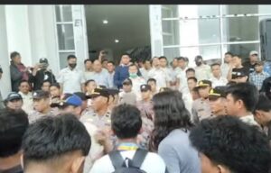 PALOPO– Suasana di depan Kantor Walikota memanas hingga sore ini. Ratusan mahasiswa yang tergabung dalam aksi unjuk rasa masih terus merangsek masuk, menuntut pertemuan langsung dengan Walikota, Hj. Naili.