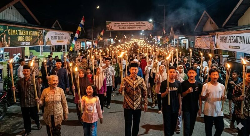 LUWU – Malam takbiran di Kabupaten Luwu tahun ini dipastikan akan tampil beda. Panitia Hari Besar Islam (PHBI) Kabupaten Luwu periode 2026-2031 tengah menyiapkan agenda kolosal bertajuk “Gema Takbir Keliling 1003 Obor”. Namun, di balik ribuan cahaya yang akan membelah kegelapan malam tersebut, tersirat pesan mendalam tentang persatuan dan kebersamaan masyarakat Bumi Sawerigading.