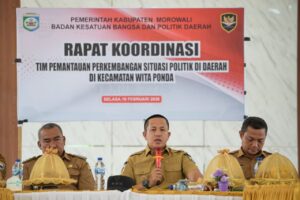 MOROWALI–Bupati Morowali Iksan Baharudin Abdul Rauf menegaskan komitmennya untuk menuntaskan pembangunan daerah dalam kurun waktu dua tahun ke depan. Hal tersebut disampaikan saat rapat koordinasi yang digelar di Kecamatan Witaponda.