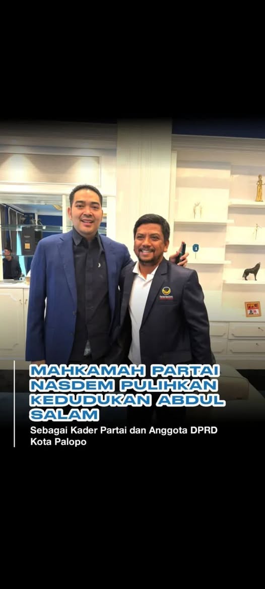 Mahkamah Partai NasDem secara resmi mengeluarkan putusan yang memulihkan seluruh hak Abdul Salam sebagai kader partai sekaligus legislator untuk periode 2024–2029.