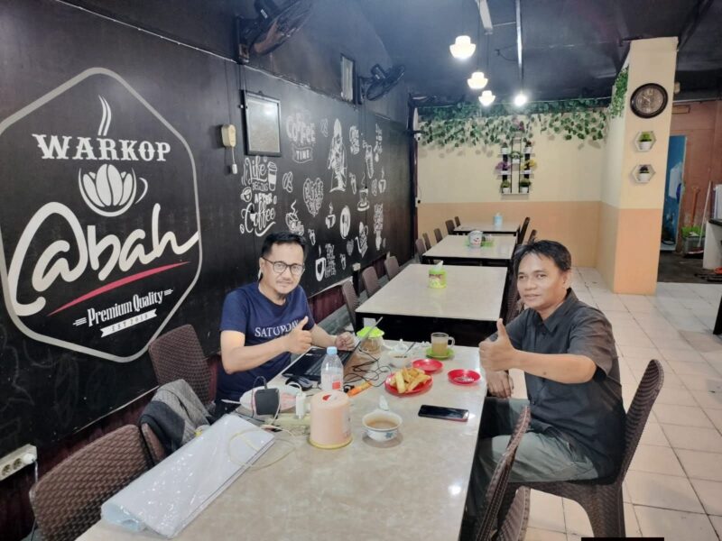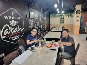 Di sebuah sudut Warkop Abah yang tenang, kepulan uap kopi menjadi saksi bisu pertemuan dua pria berbaju gelap. Di satu sisi meja, Lukman Hamarong duduk dengan kacamata bingkai hitamnya, sementara di depannya, Abd Kahar tampak santai namun sigap.