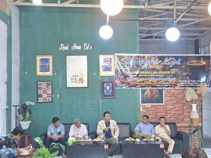 LUWU UTARA — Memperingati satu tahun perjalanan kepemimpinan pasangan Bupati dan Wakil Bupati Luwu Utara, Andi Abdullah Rahim dan Jumail Mappile (tagline AMAN JI), Pemuda Kelurahan Salassa, Kecamatan Baebunta, menggelar forum diskusi bertajuk “Secangkir Kopi” Refleksi 1 Tahun Kepemimpinan AMAN JI, Sabtu (14/2/2026).