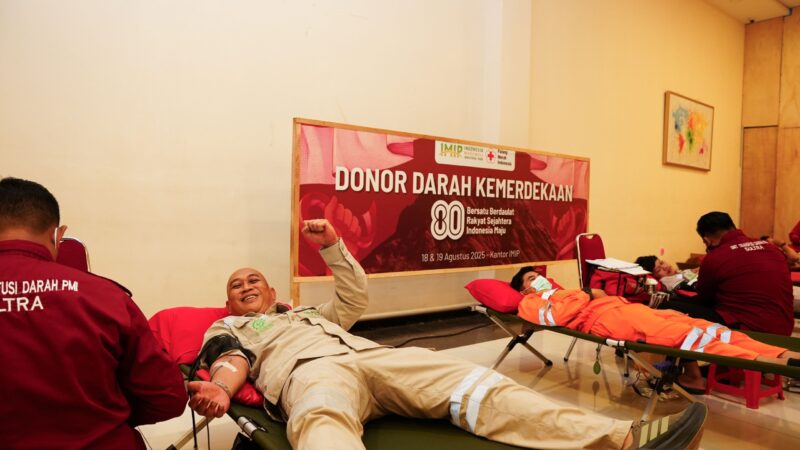 Morowali,Pamornews. 19 Agustus 2025 – PT Indonesia Morowali Industrial Park (IMIP) kembali menggelar aksi kemanusiaan donor darah. Agenda tersebut menjadi bagian dari momentum peringatan hari ulang tahun (HUT) ke-80 Republik Indonesia dan rutin dilaksanakan setiap tiga bulan atau empat kali dalam setahun. Kegiatan donor darah kali ini melibatkan seluruh karyawan yang bekerja dalam kawasan industri, mulai tanggal 18-19 Agustus 2025.